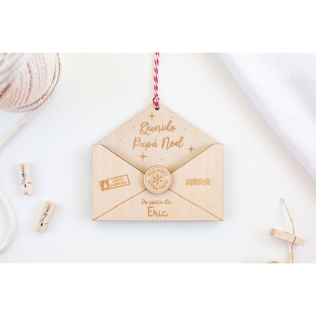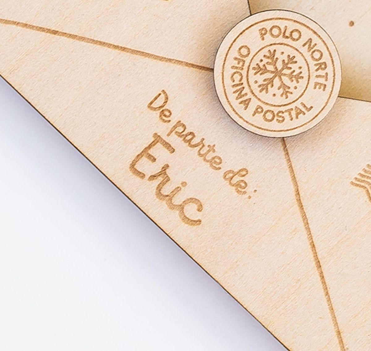 ¿Quieres que la experiencia de escribir la carta a Papá Noel sea aún más especial para tus hijos? El sobre de madera de A las Mil Maravillas es la opción perfecta.  Si lo deseas, podemos personalizar el sobre de madera con el nombre de tu niño/a, añadiendo un toque aún más mágico a su experiencia navideña. Si prefieres dejarlo sin personalizar, ¡también es una elección perfecta!